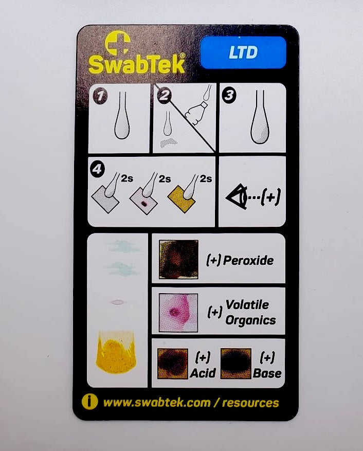 SwabTek’s Liquid Explosive Test Kit is designed to test for the presumptive presence of chemicals used in explosives in any liquid sample.